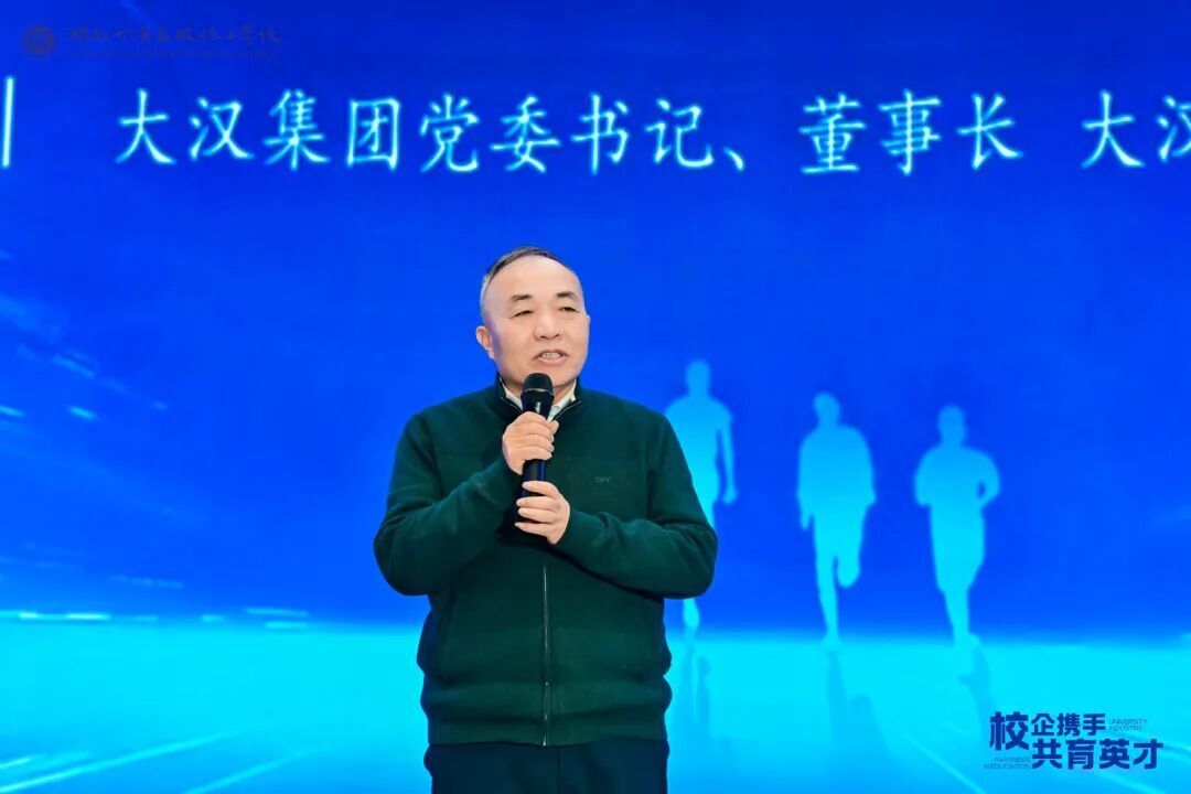仪式上,大汉集团党委书记、董事长,大汉国际工匠院创始人傅胜龙首先致辞,他强调职业教育是服务区域经济发展的重要力量,并表达了与各合作企业携手,共同培养高素质技术技能人才的坚定信心与美好期许。