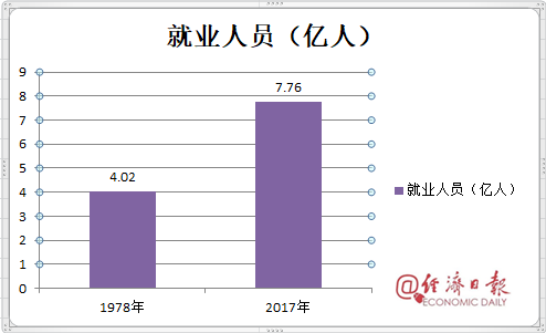 ↑1978-2017年,我国就业人员从40152万人增加到77640万人。城镇登记失业率长期处于低位,城镇调查失业率低于全球平均水平。