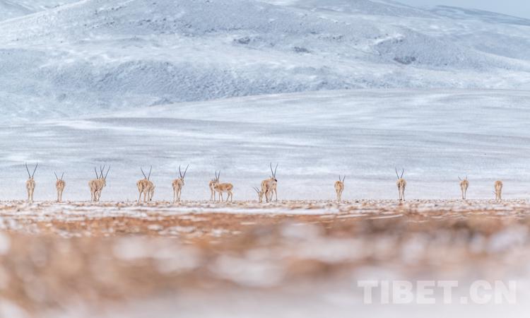 图为藏北羌塘草原之上的藏羚羊 摄影:赵耀