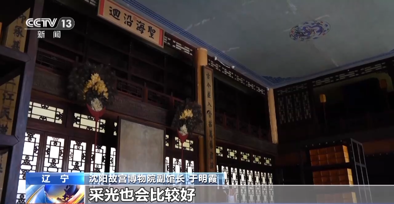 沈阳故宫博物院副馆长 于明霞:整体造型仿照的是宁波范氏的藏书楼天一阁的样式,其实它的一层二层我们当时进一楼的时候大家可能有所体会,举架比较高,这个非常实用。采光也会比较好,然后从贮藏的角度,从周围的位置上再添加一层,再摆上书架,也可以增加这个藏书量。
