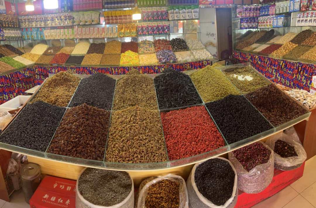 ▲市场干果店内丰富的各类特色产品。人民日报记者张义钊摄