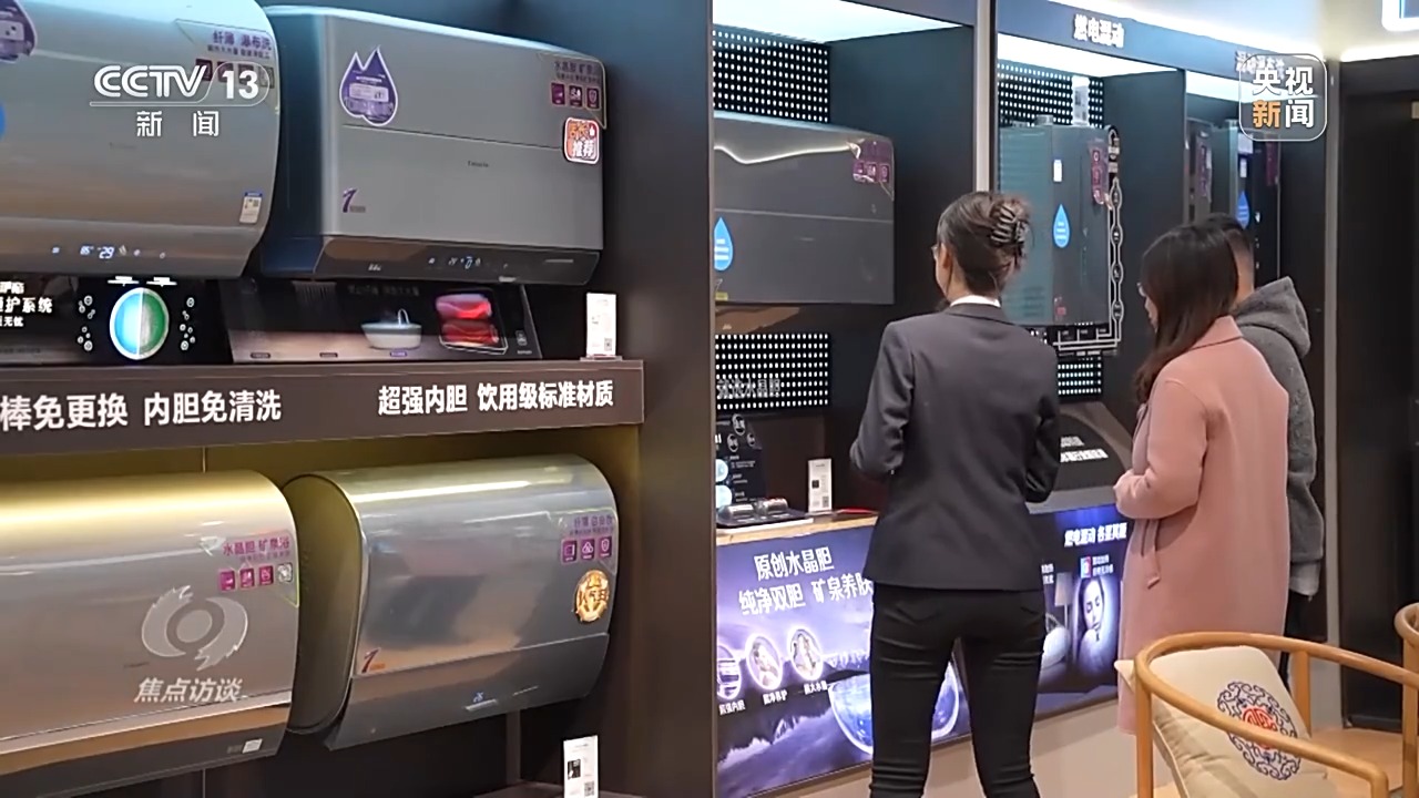 为了吸引消费者“以旧换新”,很多商家主推了绿色智能家电产品,比如采用新材料打造的热水器,内胆更耐热、耐压,也更耐腐蚀;比如体感智能电视,能通过语音或简单的手势,用户就可以完成多种复杂的功能;比如兼具多种功能的蒸烤一体机,可以在有限空间里,实现多种烹饪功能。