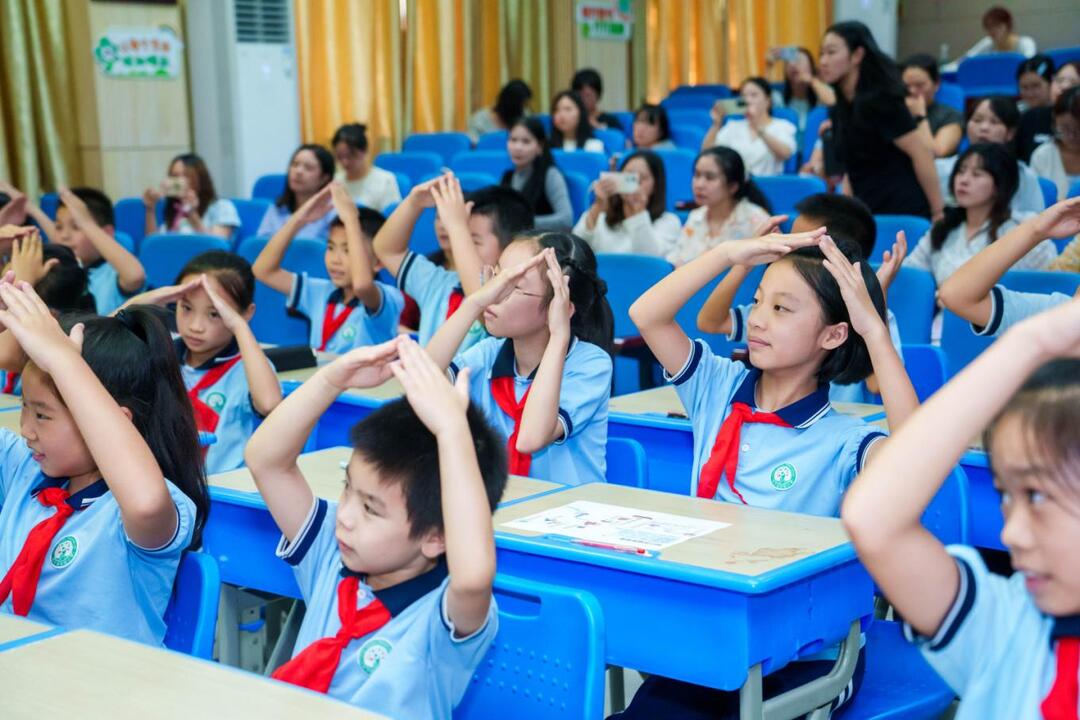 在这堂跨学科展示课上,陶老师带着孩子们云游祖国壮美河山,并引导孩子积极制作长沙旅游攻略卡,将课本知识延伸到生活实践。“老师您好,您认为我们小组制作的旅游路线合理吗?”盼娃们落落大方地向来宾们推荐自己设计的旅游攻略,获得了参访团的一致点赞与好评。