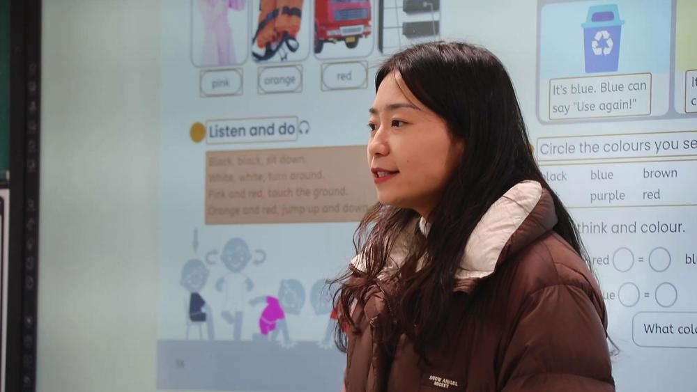 重庆市石柱土家族自治县中益乡小学英语教师何丹在给学生上英语课。