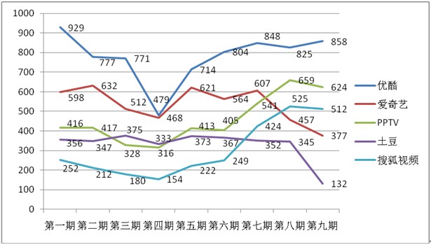 表1:《我是歌手》目前各大视频网站观看次数统计(单位:万次)