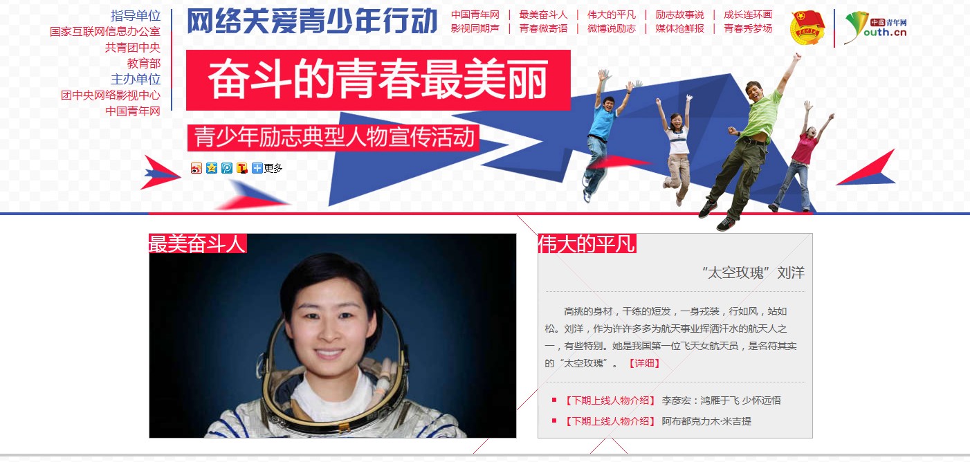 “奋斗的青春最美丽”青少年励志典型首期人物刘洋专题页面截图。资料图