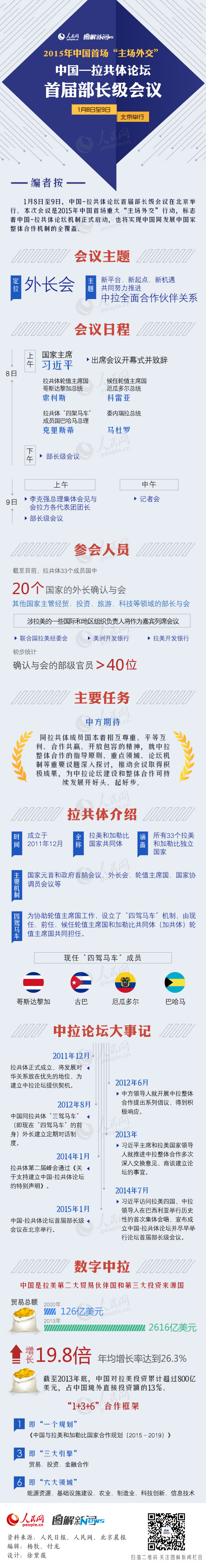 编者按:1月8日至9日,中国-拉共体论坛首届部长级会议在北京举行。本次会议是2015年中国首场重大“主场外交”行动,标志着中国-拉共体论坛机制正式启动,也将实现中国同发展中国家整体合作机制的全覆盖。