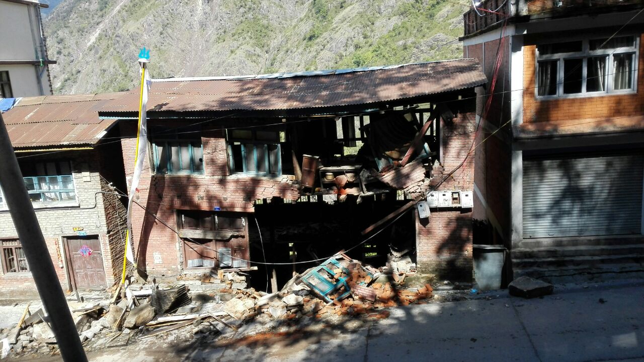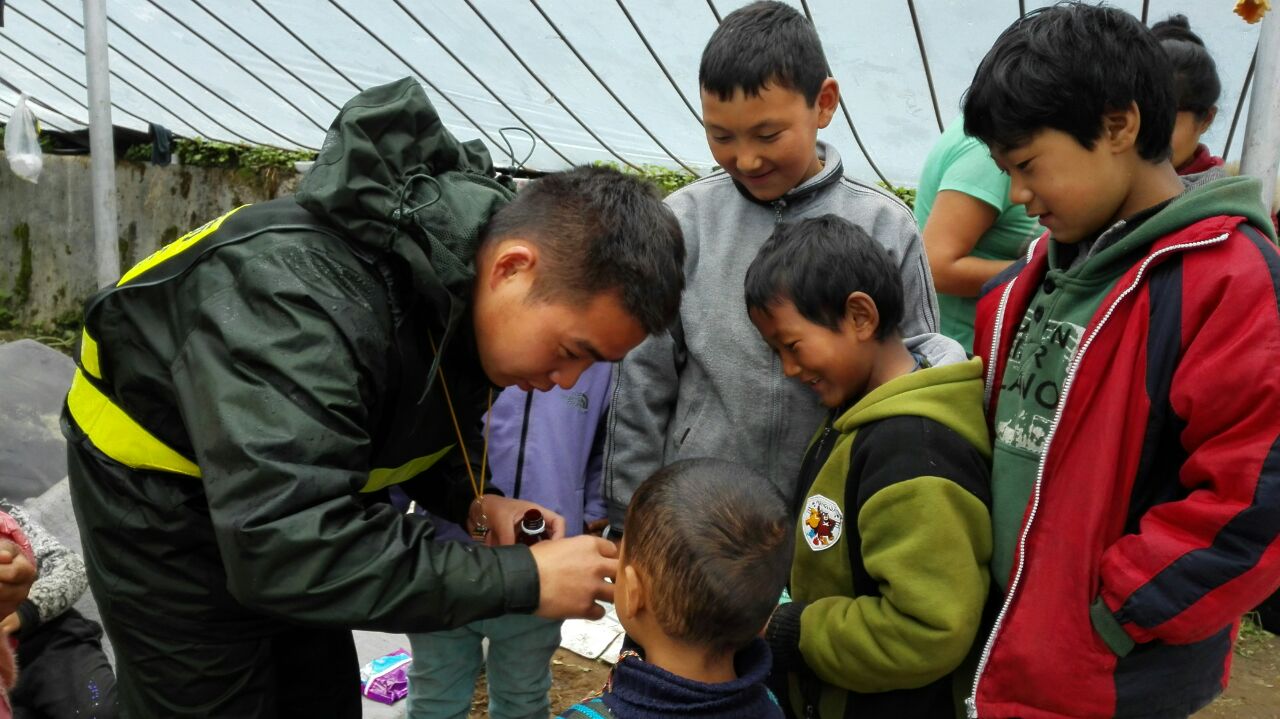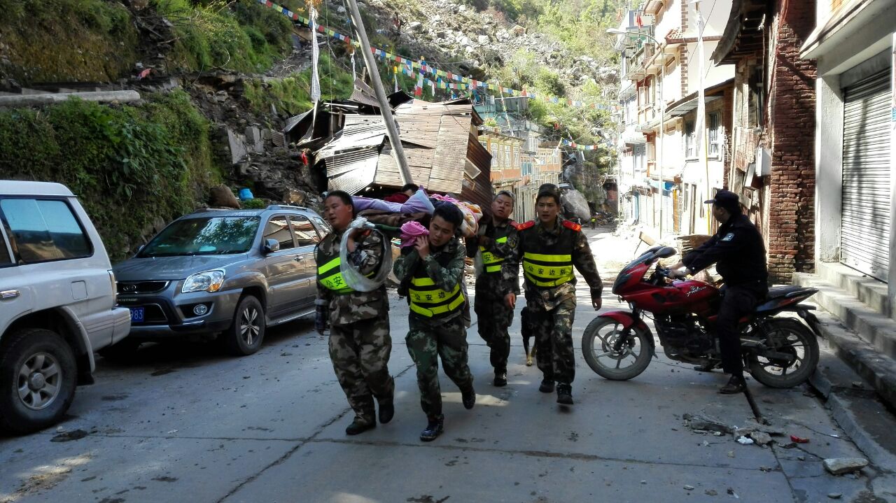 夏尔巴人村庄立新村,紧邻318国道,距樟木口岸上山8公里。4.25地震后,立新村群众被困山上120小时。在震区一线的五个日夜,感动着大难之中的大爱。区党委宣传部(外宣办)驻立新社区工作队与驻地官兵心系数百名鲜活生命,在外援无法进驻的关键时刻,主动担当,第一时间安置救护群众,成立抗震救灾协调小组,把立新受灾情况报送出去,确保了立新片区无一人伤亡和后勤保障工作安全有序。“我们共安置了548名群众,其中收留了93名滞留在立新的尼泊尔人。”立新边防派出所所长朱智敏告诉我们,“我们所里方刚和杨健的新婚妻子本来是到立新度婚假的,没想到遭遇了大地震。她们两位都是学医出身,承担了医疗救援组的重任。”