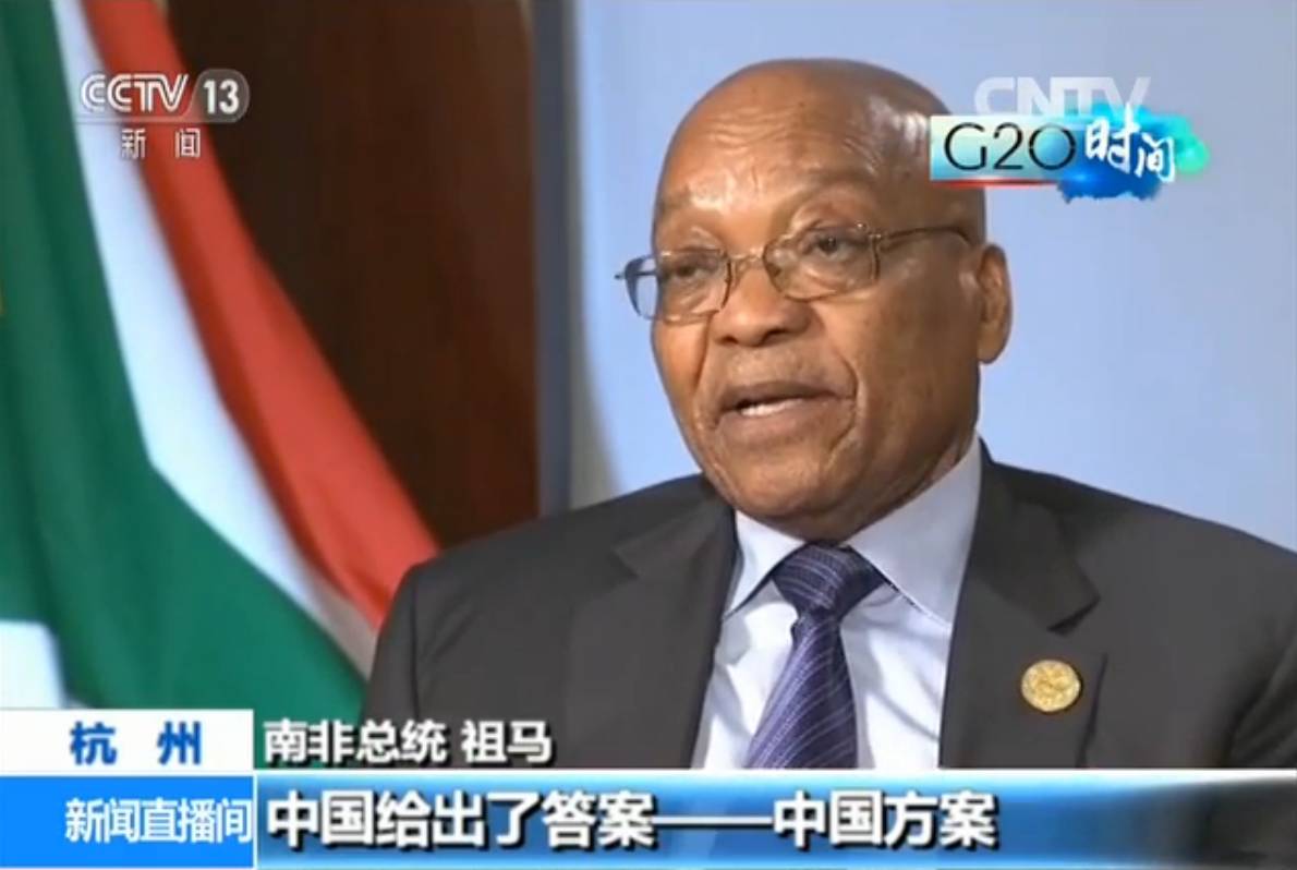 南非总统祖马表示,作为非洲国家的代表,他很赞同G20杭州峰会上习主席提出的全球治理的中国方案,他认为这不仅会促进非洲经济的增长,也为全球经济增长做出贡献。