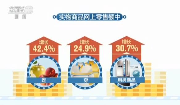 今年1至5月份,全国网上零售额32691亿元,同比增长30.7%。其中,实物商品网上零售额24819亿元,增长30.0%,占社会消费品零售总额的比重为16.6%;在实物商品网上零售额中,吃、穿和用类商品分别增长42.4%、24.9%和30.7%。不仅是网上购物,以新媒体、手机支付、手机视频等为依托的新兴消费也快速增长。
