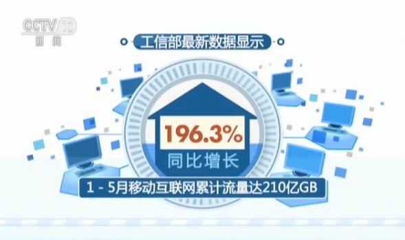 工信部最新数据显示,1至5月移动互联网累计流量达210亿GB,同比增长196.3%;其中通过手机上网的流量达到206亿GB,同比增长212.3%,占移动互联网总流量的98.1%。今年1至5月,三家基础电信企业完成移动数据及移动互联网业务收入2569亿元,同比增长13.2%。