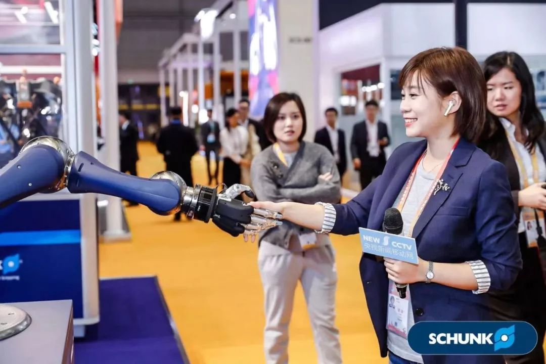 △央视小编馆主和智能机械手握手