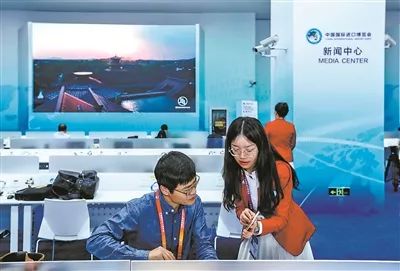 值得一提的是,在进博会展区,志愿者随处可见。为助力进博会,超过5000名志愿者上岗,其中96%的志愿者是高校大学生,为所有参会人员提供周到服务。