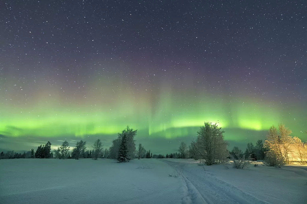 色彩斑斓的极光点亮摩尔曼斯克的极夜