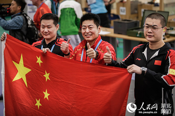 在男子25米手枪军事速射团体项目中,八一射击队在巨大压力下充分展现了威武之师的英雄本色,射落本届军运会第一块金牌,成功卫冕,也为中国队在本届军运会上赢得了首枚金牌。