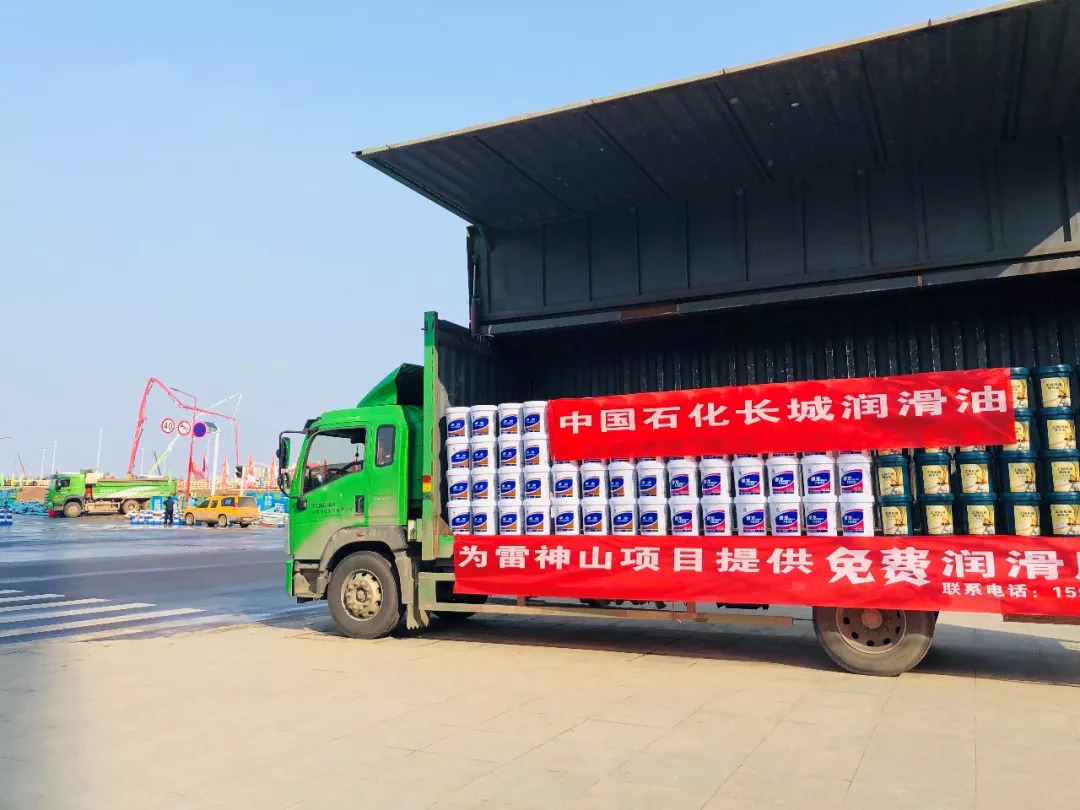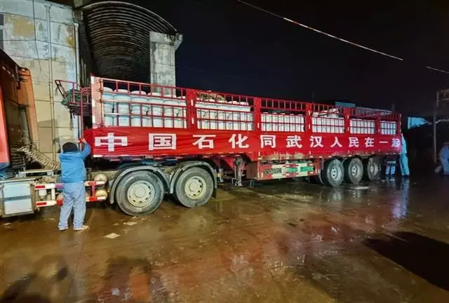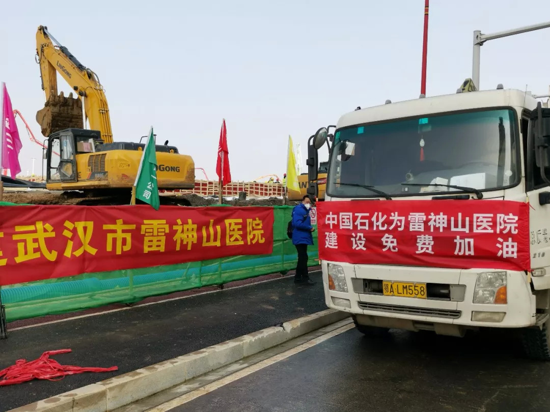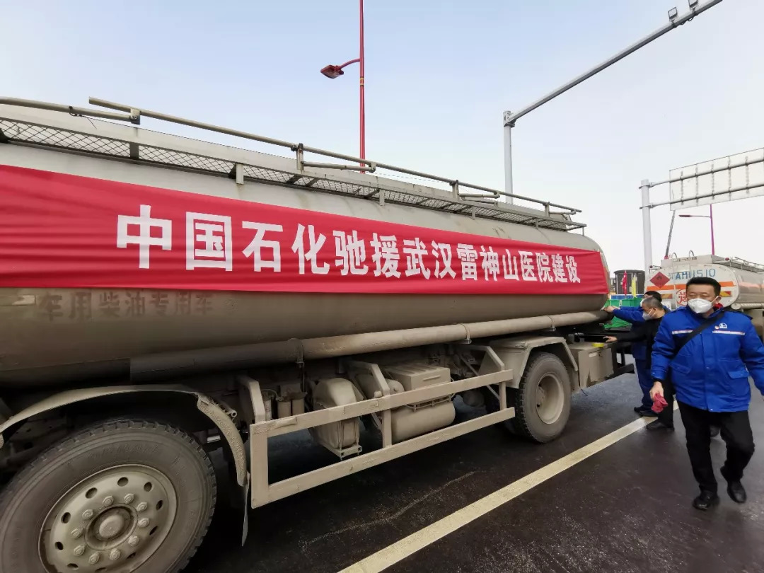 1月30日,中国石化免费向武汉江夏雷神山医院建筑工地提供16500升柴油和1000桶工程机械润滑油,保障医院建设用油。