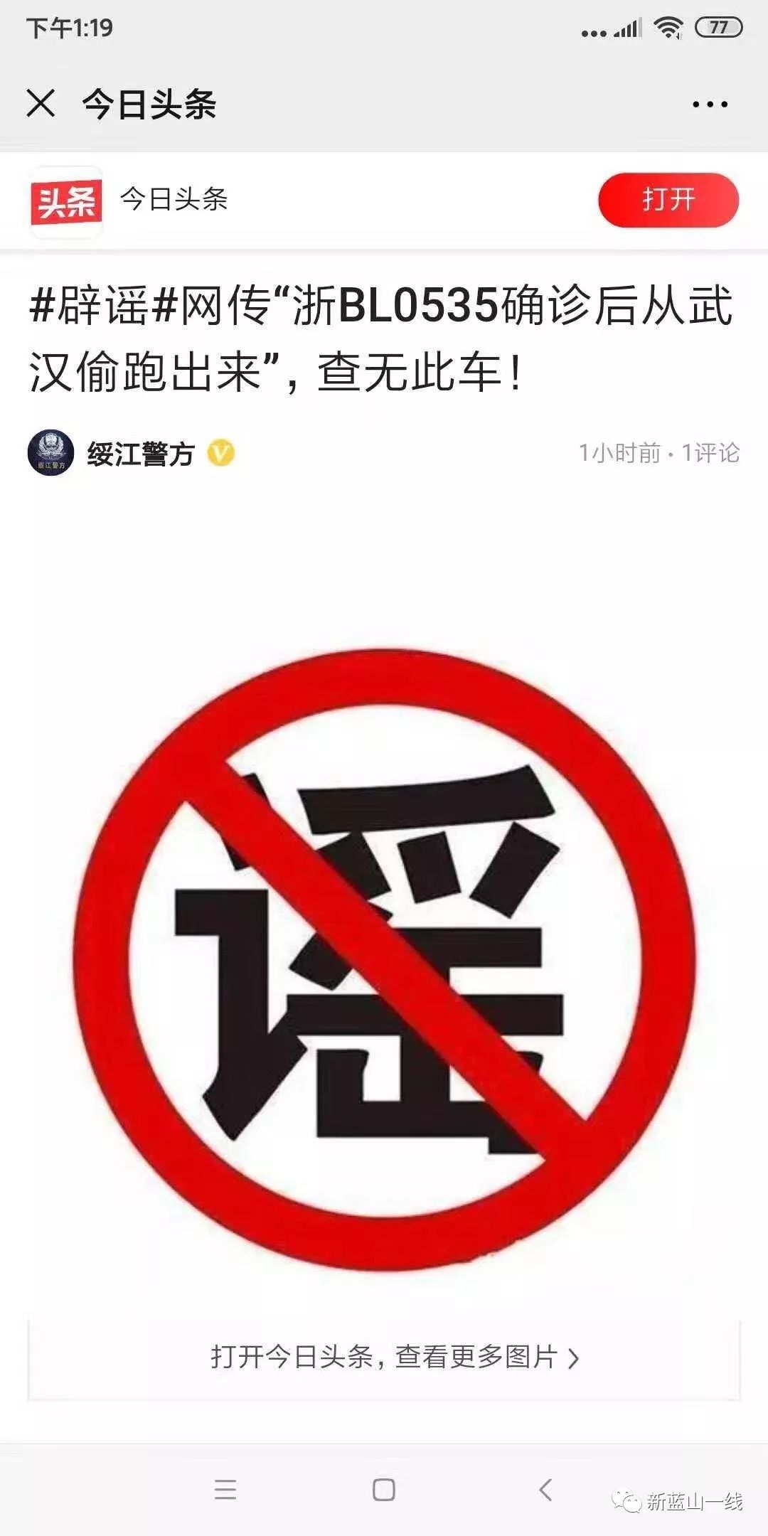 车牌号 浙B L0535 这个车刚从武汉回来蓝山,车上的人确诊了偷跑回来的,大家看到了及时报警,希望大家留意此车牌号,转发各个群,朋友圈,以免更多人受到传染。这是谣言,希望大家不要传谣,信谣。