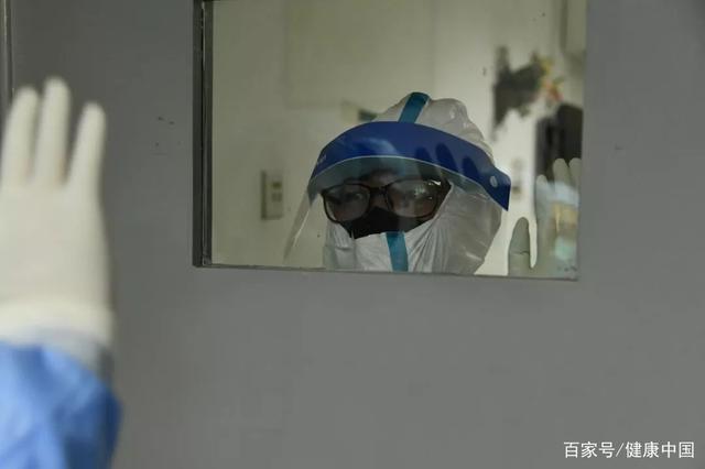 隔离病房的医务人员问候、鼓劲。他们在听到患者的呼救后,第一时间冲上了防治工作的一线。密不透风的隔离衣,每天一穿就是500余分钟。可他们依然毫无怨言,只因患者的需要、患者家人的期盼,只因他们肩上有着沉甸甸的两个字——“医生”。(华中科技大学附属协和医院供图)