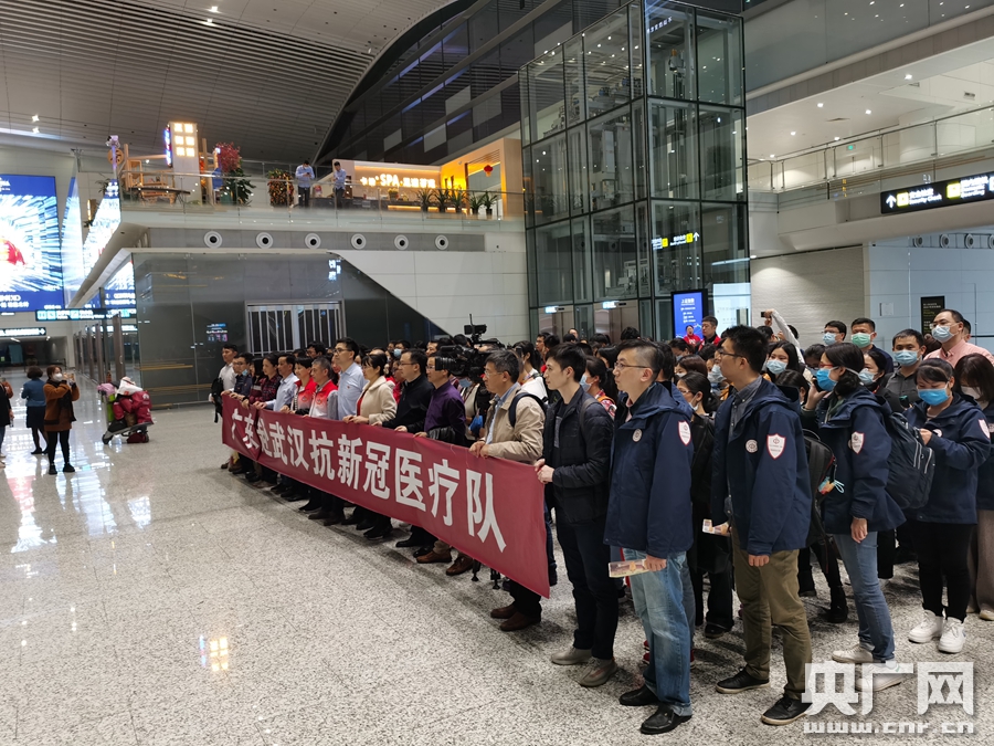 央广网广州1月25日消息(记者周羽 通讯员粤卫信)1月24日晚,128名广东省援助湖北医疗队队员响应国家号召,紧急整理行装,逆向而行出征湖北武汉,支援湖北省疫情救治工作。广东省卫生健康委主任、党组书记段宇飞前往广州白云机场为医疗队送行。