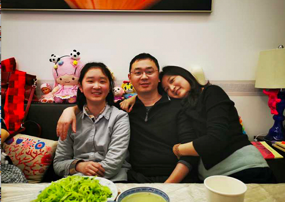 汪伟与家人匆匆提前吃完年夜饭,拍一张合照放在手机里