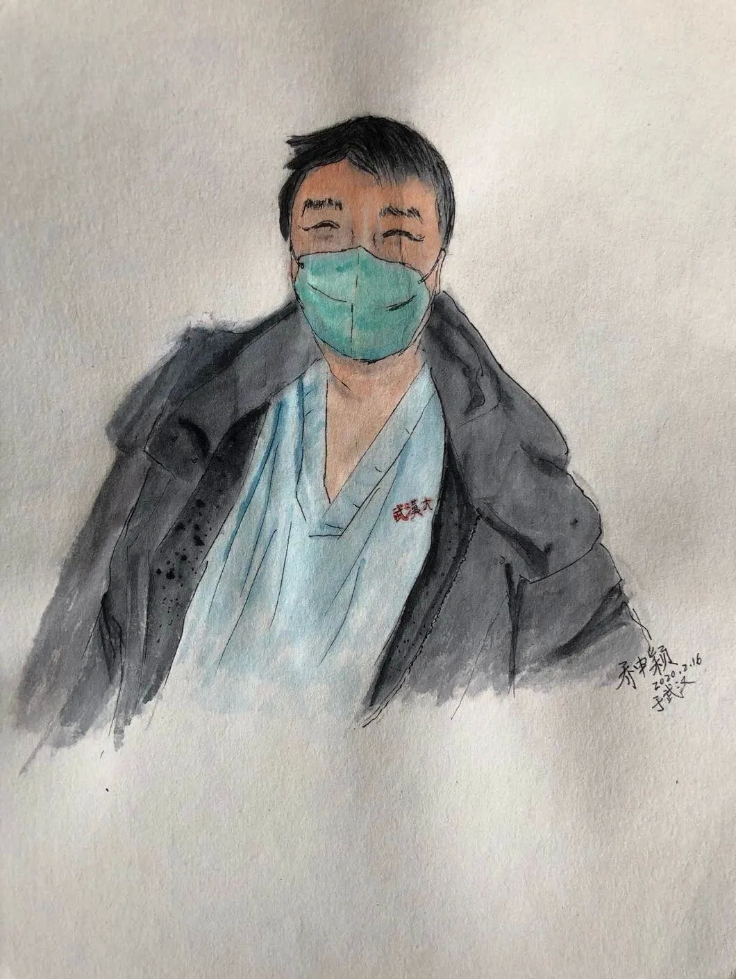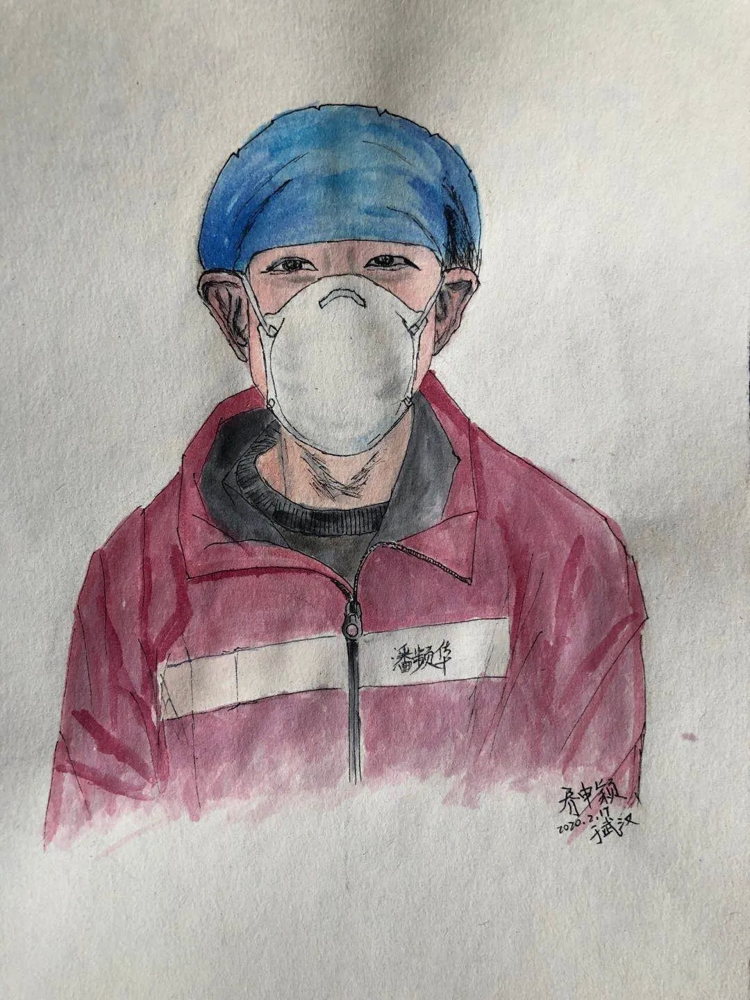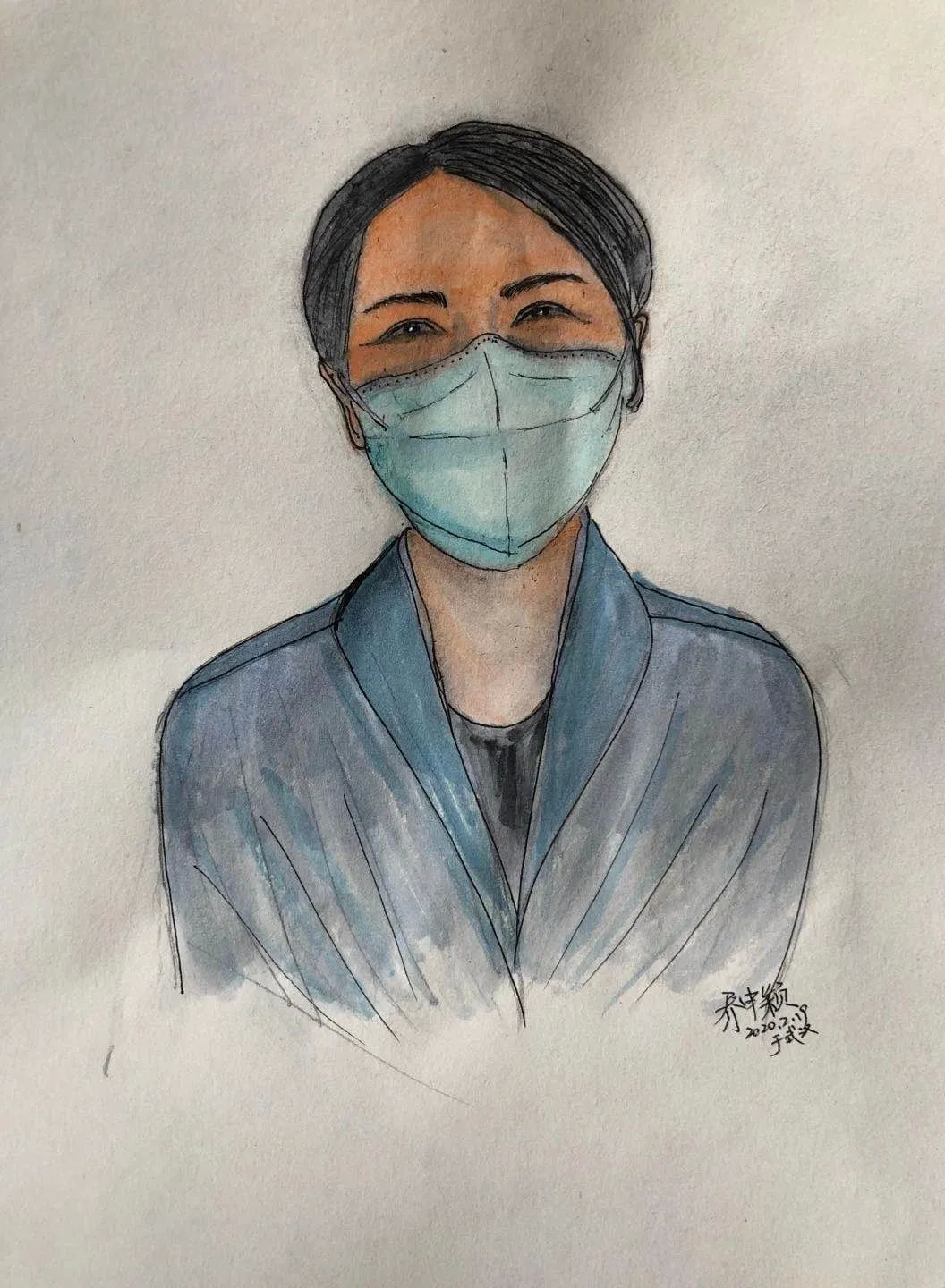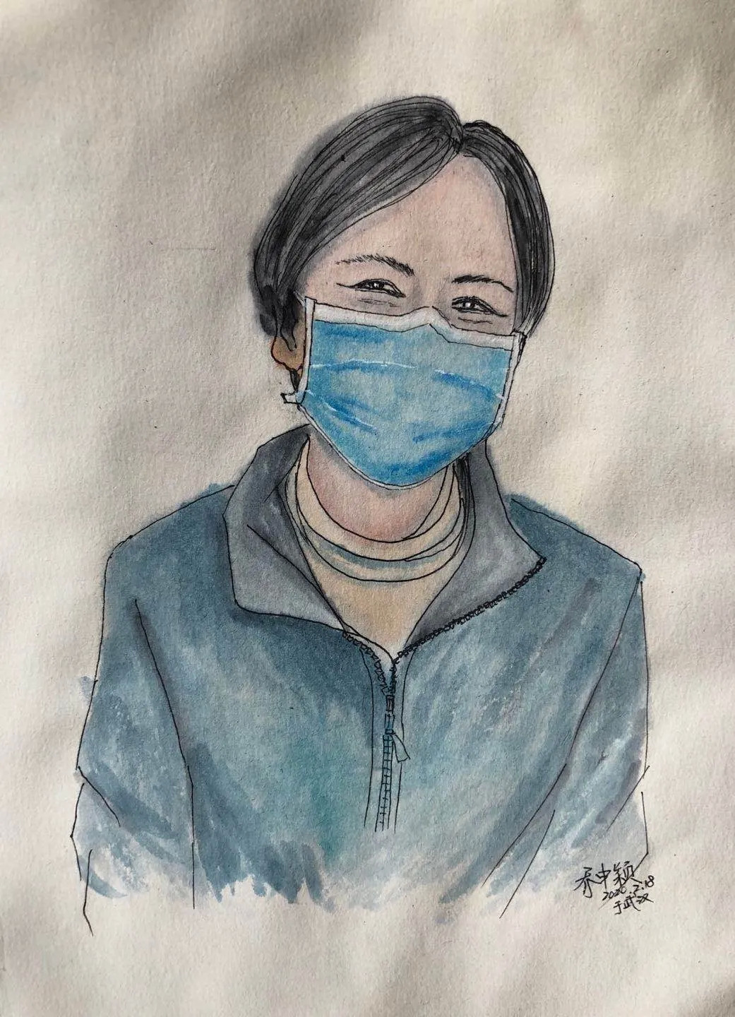 刚开始就是正常的写稿拍视频,随着时间的推移,就特别想画画。这个城市里充满了触动心灵的瞬间,可能是一个笑脸,可能是一个手势。我总觉得光是写下来、拍下来,还远远不够,只有把它画下来,才真正能把我那一刻的感动也一起收藏起来。当时武汉根本买不到颜料,我请同事帮忙从北京带过来,2月16号的时候开始画。第一个想到的就是采访过的医护人员的笑脸。因为大家都绷得很紧,好多医护人员采访中说着说着就哭了。虽然对采访来说可能是件好事,但我总感觉很愧疚,觉得为个采访让人又难过一次。后来就形成一个习惯,每次我都要问一个问题:今天有没有开心的事呀?或者说:咱换个话题,说点高兴的!他们给了我各种各样的答案,但是不管是为什么高兴,那一刻他们的笑容都特别灿烂特别美好。所以我把他们的笑画了下来,希望更多的人能看到,能从中汲取力量。