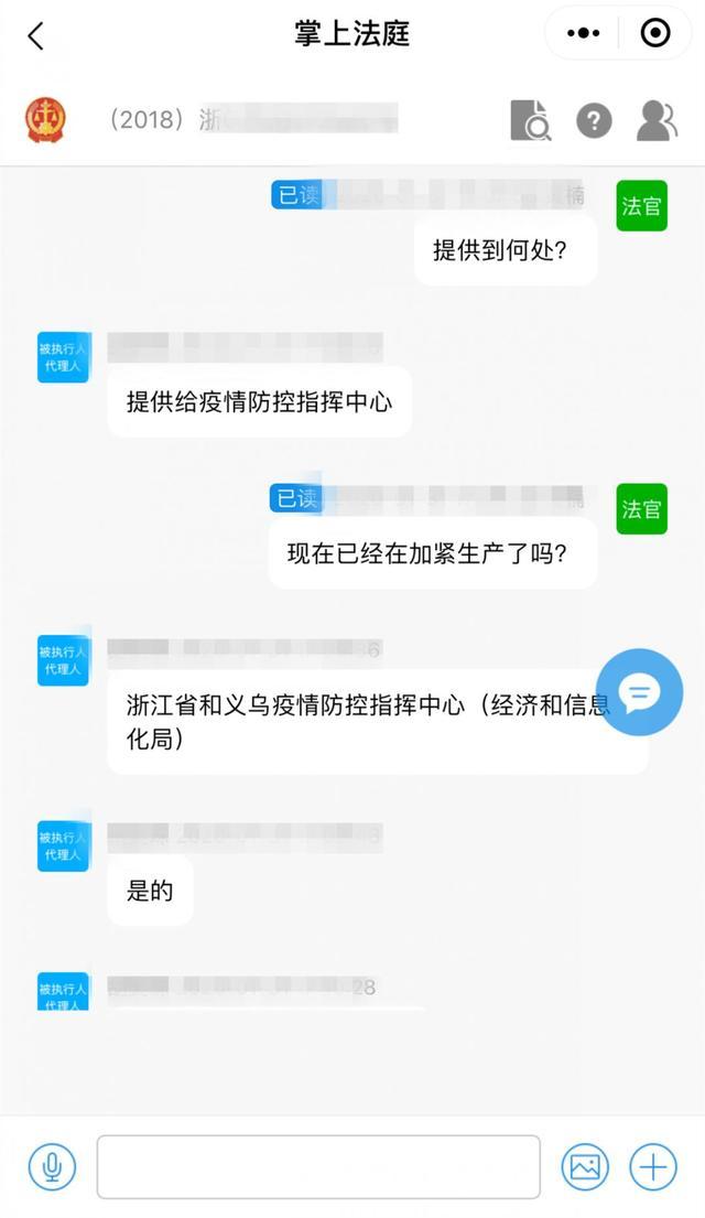 在抗击疫情的关键时刻,“医疗器械”这四个字格外显眼。收到该公司信用修复申请后,义乌法院执行人员高度重视,立即向院领导汇报,执行局第一时间组织召开局务会讨论研判,并督促该公司通过移动微法院提交信用修复相关材料,及时汇报生产情况、拍摄生产现场工作图。