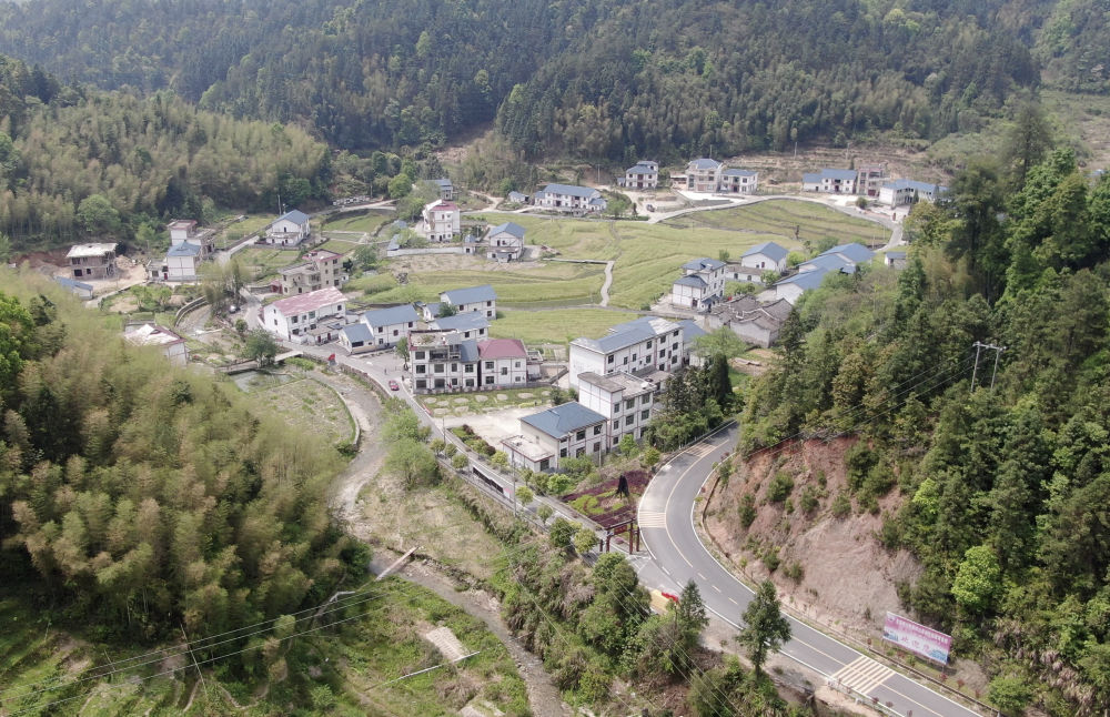 ↑这是红色主题研学“坝上红军的一天”教学点——井冈山市茅坪镇坝上村(无人机照片)。新华社记者 郭杰文 摄