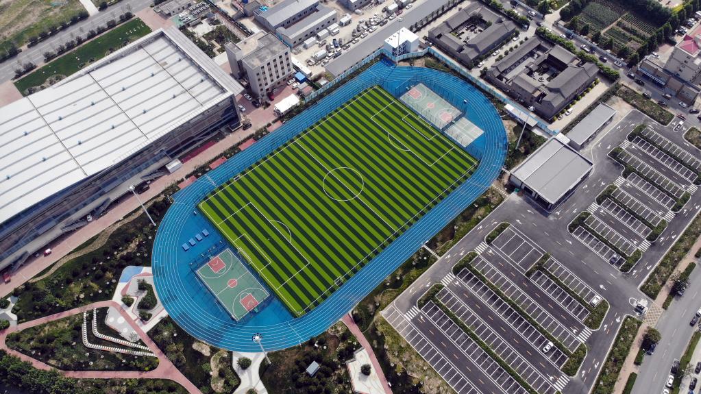这是7月9日拍摄的容城县体育公园(无人机照片)。新华社记者 骆学峰 摄
