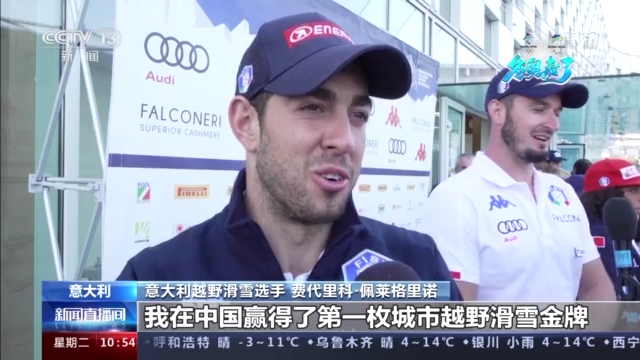 意大利越野滑雪选手 费代里科·佩莱格里诺:平昌冬奥会之后,我在中国赢得了第一枚城市越野滑雪金牌。我希望在这次冬奥会上能保持住在中国比赛100%获胜的数据。