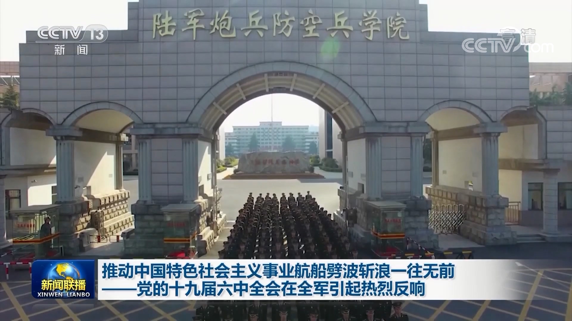 央视网消息(新闻联播):党的十九届六中全会审议通过的《中共中央关于党的百年奋斗重大成就和历史经验的决议》,在全军部队引起热烈反响。广大官兵坚定表示,要更加紧密地团结在以习近平同志为核心的党中央周围,坚持以习近平新时代中国特色社会主义思想为指导,深入贯彻习近平强军思想,坚决听党指挥、勠力奋斗强军、有效履行使命,推动中国特色社会主义事业航船劈波斩浪、一往无前。