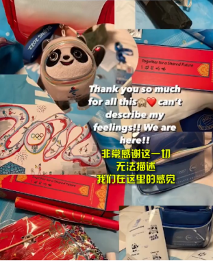同样对北京冬奥会周到安排“点赞”的,还有来自捷克的花样滑冰选手娜塔莉(Natalie TASCHLEROVA),她近日也在社交媒体上发布了一段感谢北京冬奥的vlog(视频日记)。在视频中,娜塔莉记录了她居住的房间环境和屋内的冬奥小礼品。同时,视频中还可以看出她对北京冬奥吉祥物“冰墩墩”非常喜爱,“我一直在等这个小家伙,现在我想要那个大的了,”娜塔莉说道。
