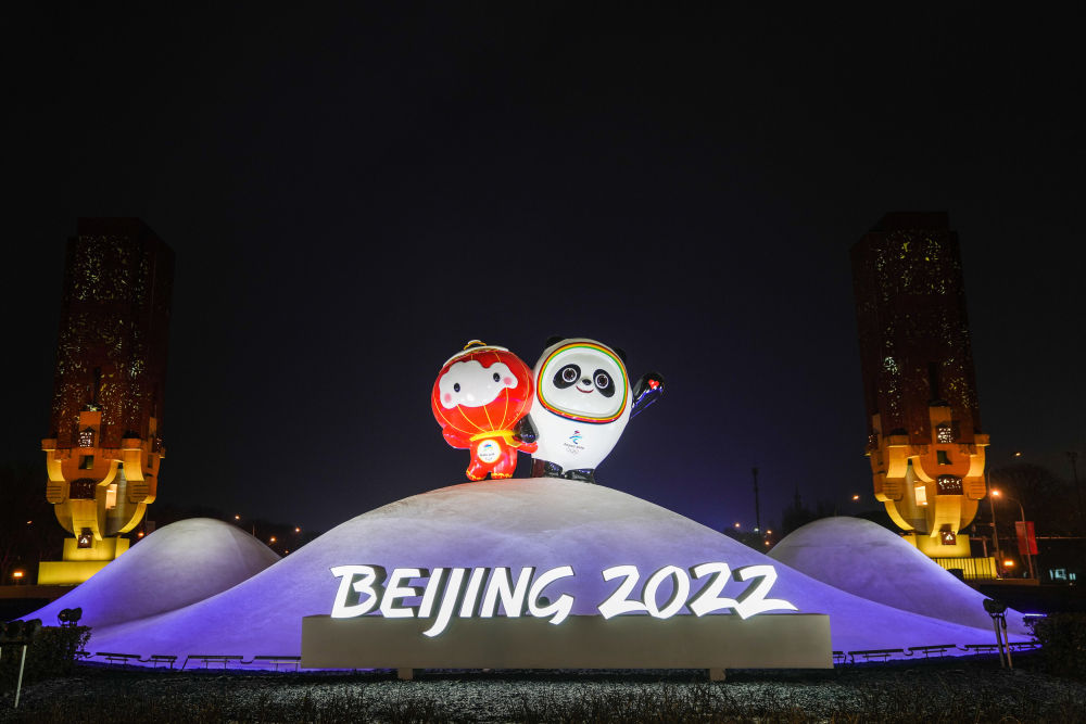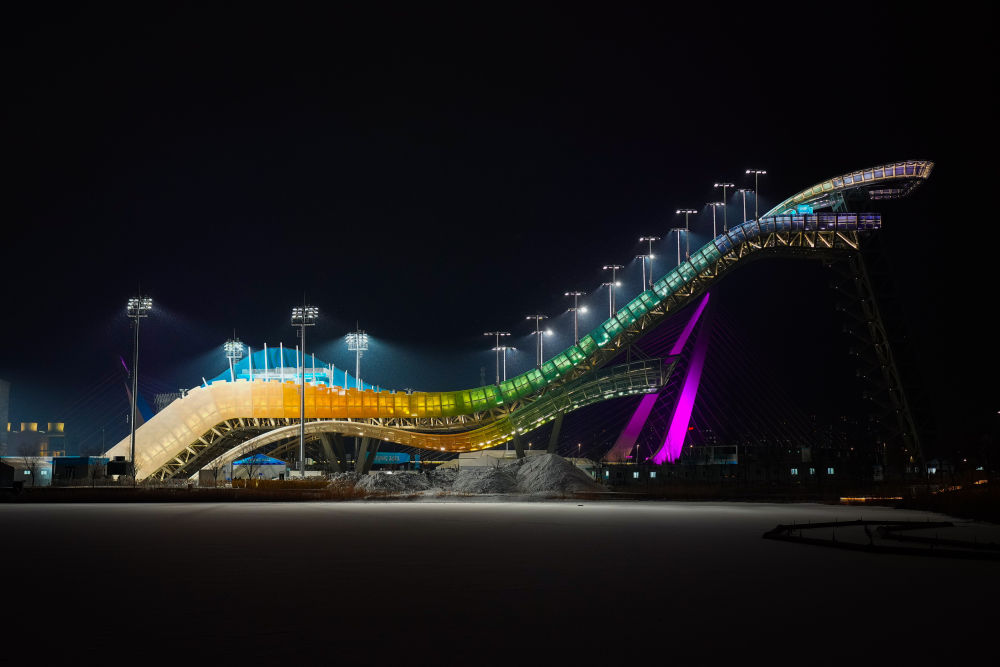 1月20日,位于北京市石景山区首钢园内的首钢滑雪大跳台开启灯光秀。(新华社记者彭子洋摄)