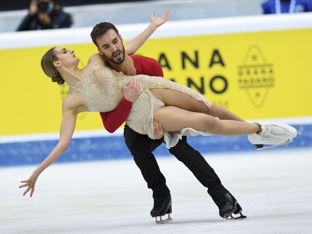 2021年11月7日,在意大利都灵举行的花样滑冰大奖赛意大利站冰舞比赛中,法国组合帕帕达吉斯/西泽龙获得冠军。新华社记者金马梦妮摄