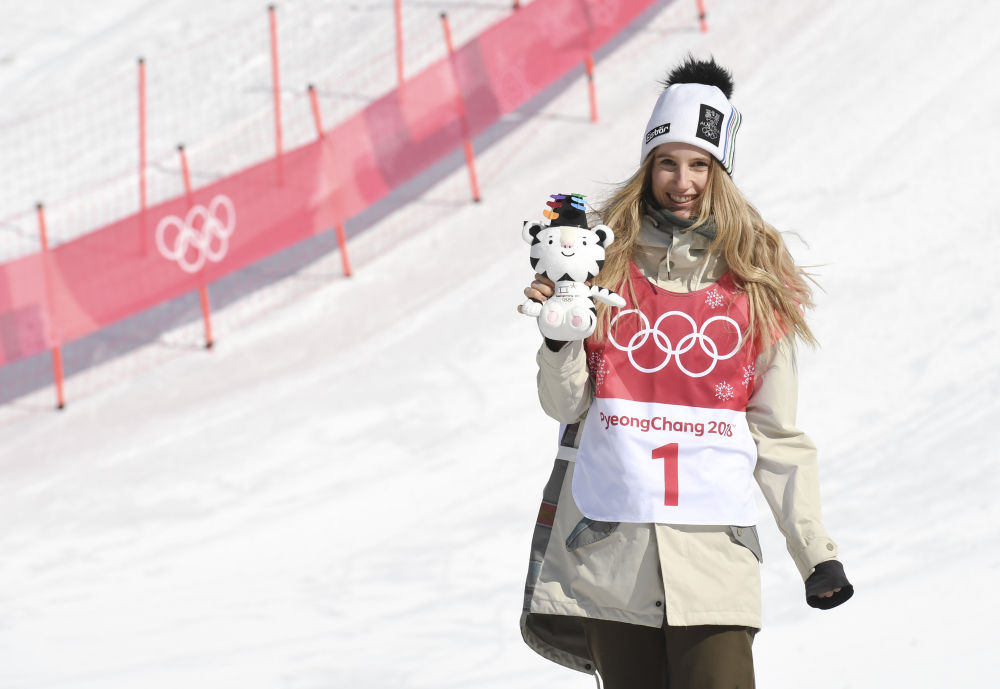 2018年2月22日,平昌冬奥会单板滑雪女子大跳台比赛中,奥地利选手安娜· 加塞尔获得冠军。新华社记者吕小炜摄