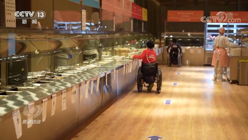 在冬残奥村,一切以人为本,不仅是住宿的房间,餐厅也处处体现了服务保障的细心、细致。冬残奥会的餐厅原来也是冬奥会期间的餐厅,为了方便有轮椅运动员进出和就餐,餐厅的桌椅摆放、整体空间,包括桌子的高度等等,也一一做了针对性改造和转换。针对视力障碍运动员,还专门准备了盲文菜单。