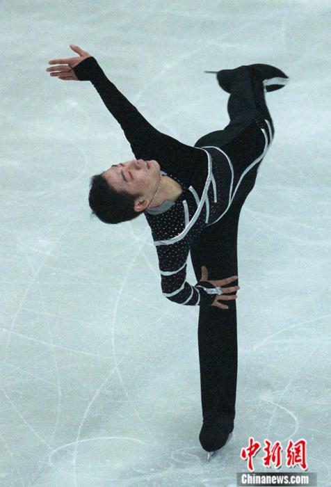 2003年中国运动员李成江在四大洲花样滑冰锦标赛男子单人滑决赛中,获得第三名。中新社记者 武仲林 摄
