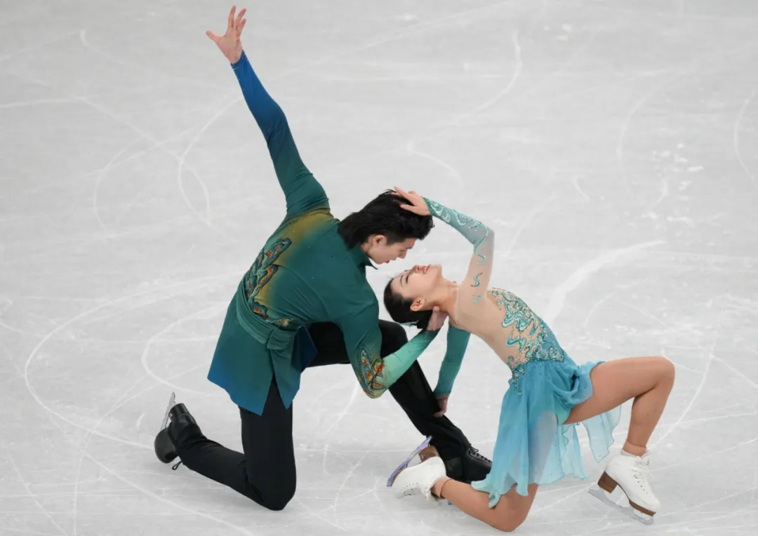 2月4日,中国队选手王诗玥(右)/柳鑫宇在比赛中。新华社记者 曹灿 摄