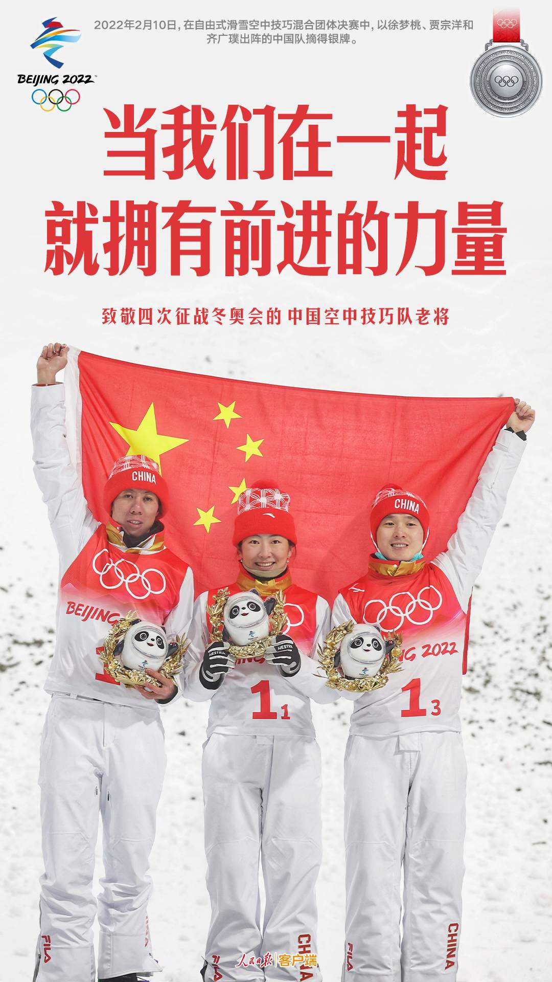四次征战冬奥会,三名老将携手出战。拼尽全力、互相鼓励,当我们在一起,就拥有前进的力量。致敬空中技巧三位老将,祝愿三位选手在接下来的单项赛中圆梦!