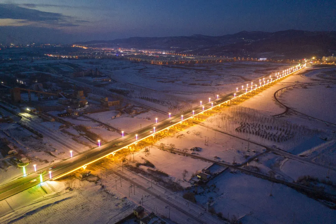 1月12日拍摄的七台河市桃山区冠军桥(无人机照片)。新华社记者 谢剑飞 摄