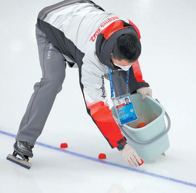 赛事保障、运行服务人员中,有技能精湛、精益求精的制冰师,有经验丰富、能力过硬的医生,有热情专业、服务细致的志愿者,还有电力工人、环卫工人、气象工作者、通信保障人员……精彩赛事的顺利进行,有他们的默默付出和无私奉献。