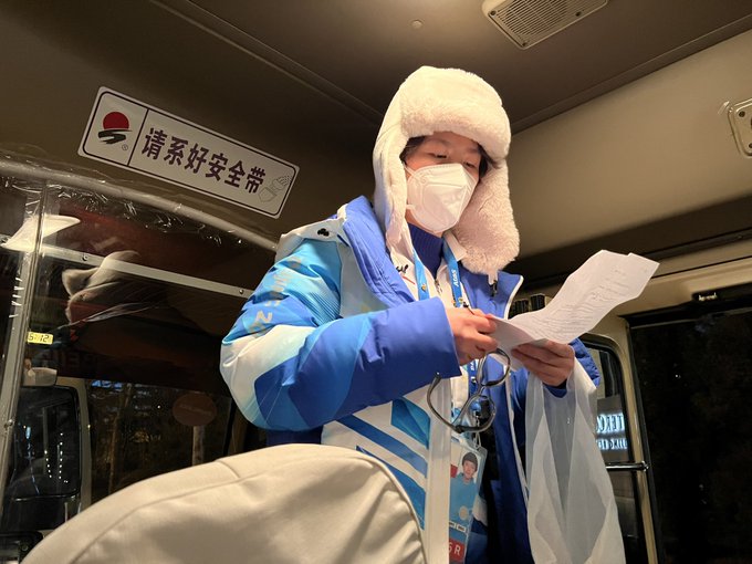 太田雄贵在推文中说,“在前往开幕式会场的大巴上,冬奥志愿者们用英文提示大家当天的注意事项,可能因为反复练习,使用的文稿纸张有不少折痕。当志愿者略带紧张地宣读完毕后,车上的乘客纷纷用热烈的掌声赞美他们的努力,现场呈现出一幅很棒的画面”。