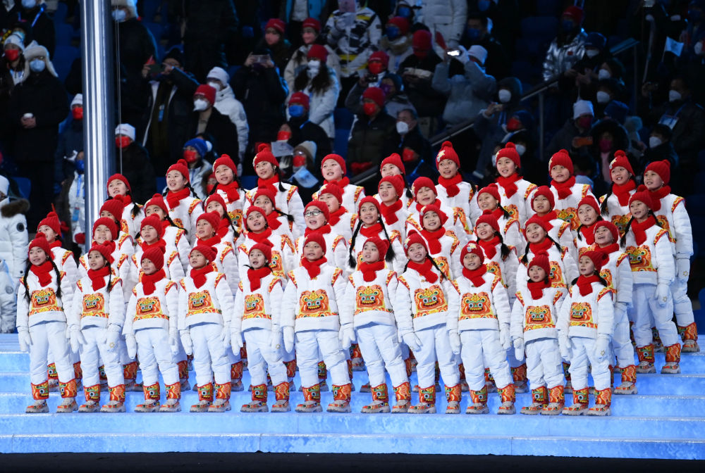 2月4日晚,第二十四届冬季奥林匹克运动会开幕式在北京国家体育场举行。这是孩子们演唱奥林匹克会歌。新华社记者 李尕 摄