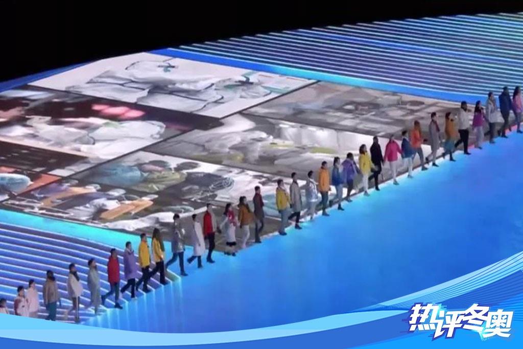 “我们”,来自最普通的百姓,汇聚起了新时代中国的精气神儿。在开幕式前点燃现场气氛的广场舞舞者,最大的70多岁,最小的5岁,表达着中国人过年的喜庆气氛;100多位来自各行各业、56个民族的普通人,手手相传地护送国旗入场,表达着中国人民与祖国最深厚的情感;“虎头虎脑”的河北阜平山区里的孩子们,用希腊语唱响奥林匹克会歌;手持“和平鸽”的小朋友们,在场内奔跑……舞台上,非专业演员的“我们”用最朴素的方式展示着自己;舞台下,中国“带动三亿人参与冰雪运动”的承诺已经实现。北京冬奥对于促进中国人民美好幸福生活的意义,便在其中了。