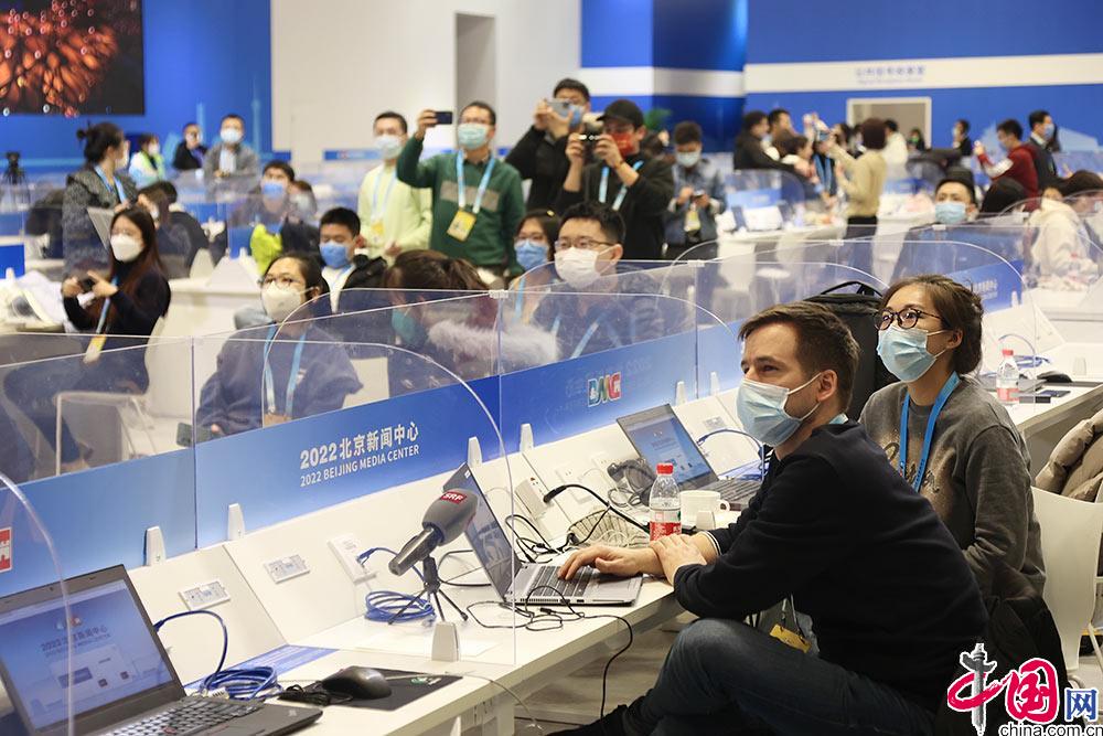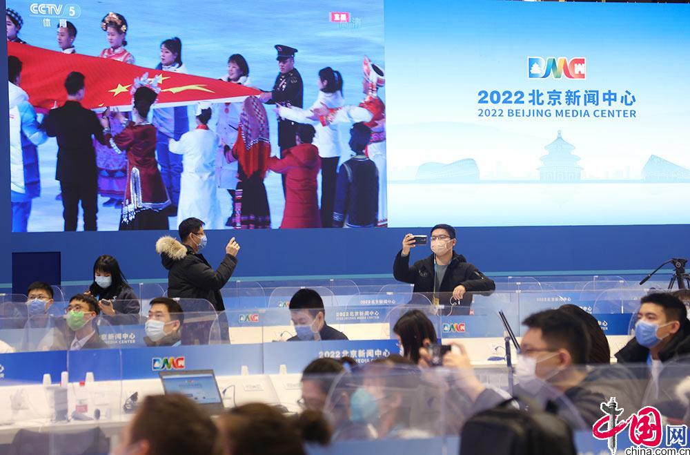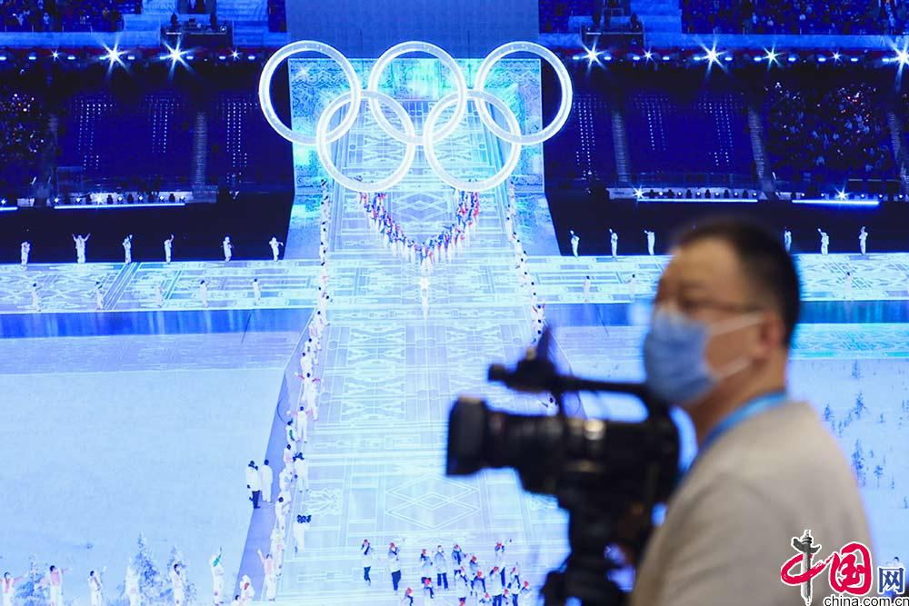 2月4日晚,第二十四届冬季奥林匹克运动会开幕式在北京国家体育场举行。中外记者在北京冬奥会2022北京新闻中心同步关注开幕式现场。中国网 伦晓璇摄影