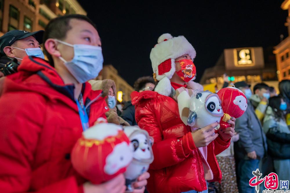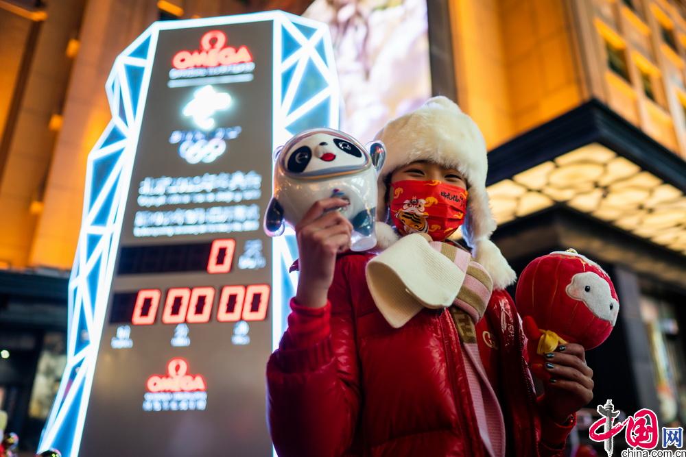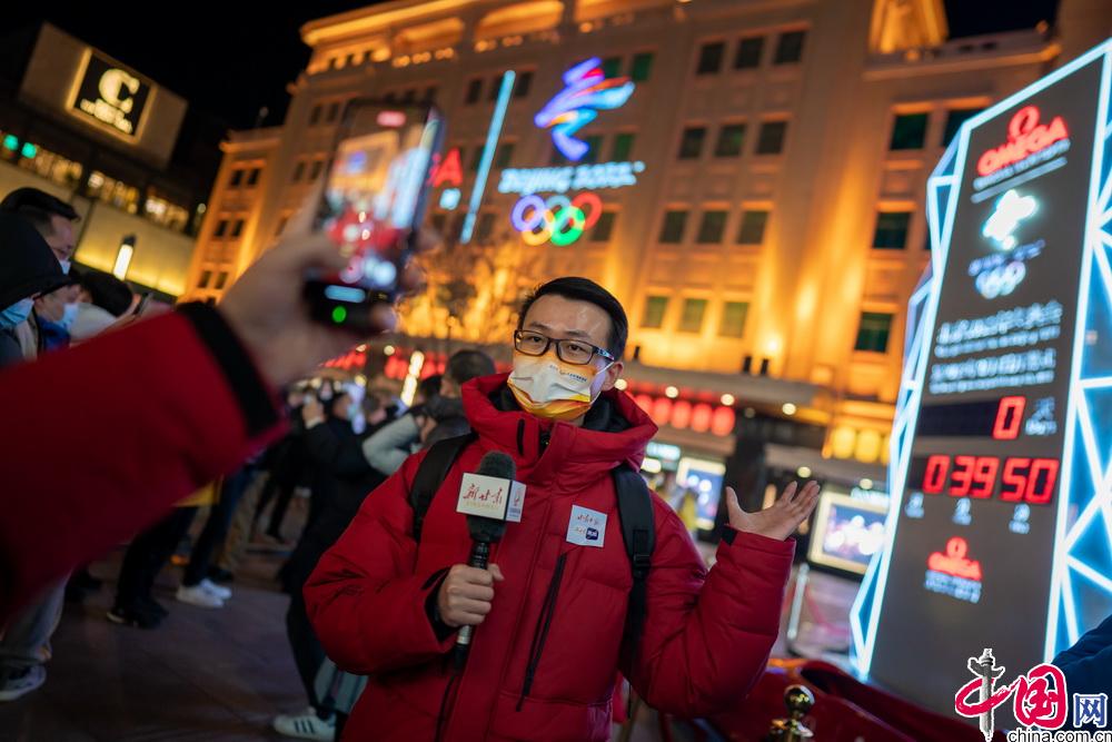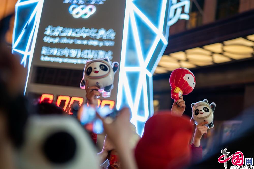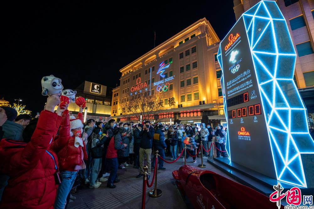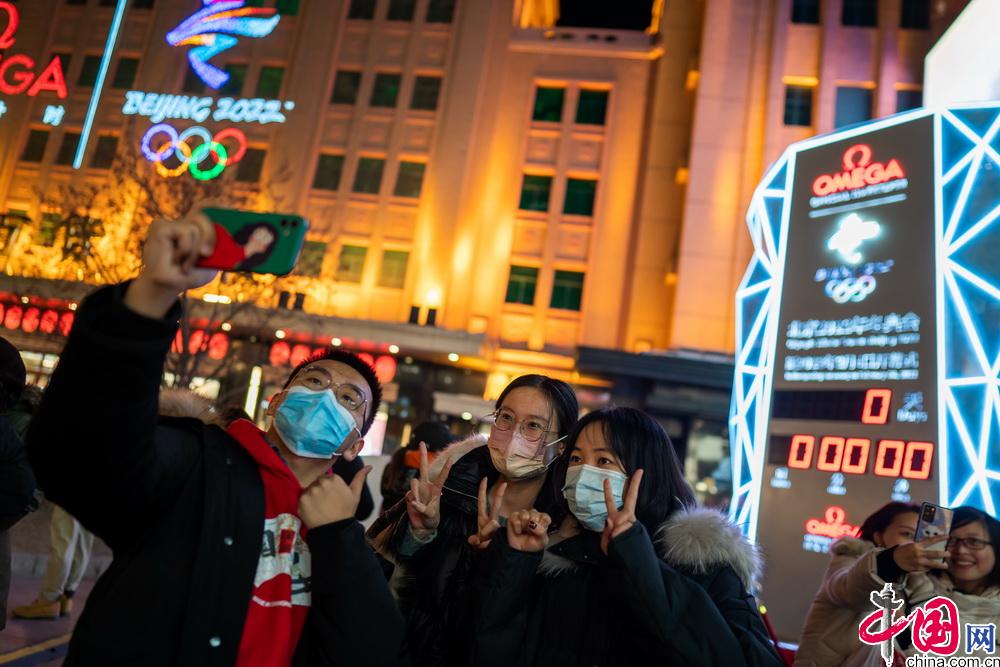 2月4日晚,第二十四届冬季奥林匹克运动会开幕式在北京国家体育场举行。众多北京市民与游客在王府井步行街的北京2022年冬奥会开幕式倒计时牌前,共同倒计时迎接北京冬奥会开幕。中国网 郑亮摄影