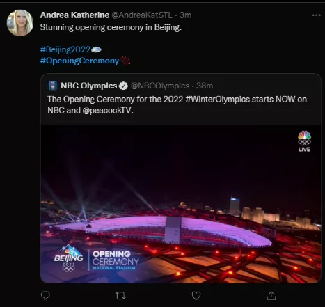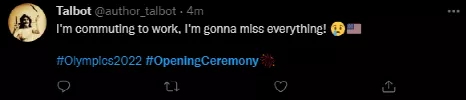 但也有美国网友似乎因为工作日错过开幕式的直播,遗憾表示:“我要去上班了,我会错过所有(画面)的!”↓