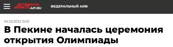 俄罗斯《论据与事实报》:北京奥运会开幕式已开始