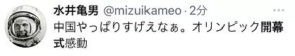 而在开幕后,有大量日本网友发评论称北京冬奥开幕式优于东京。有人笑称:“才刚开始,感觉就比东京的开幕式厉害了。”
