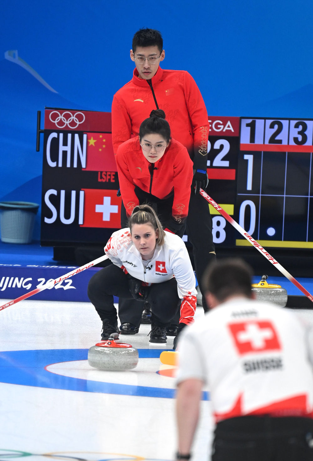 2月2日,北京冬奥会冰壶混双循环赛在北京国家游泳中心“冰立方”开赛。中国队范苏圆/凌智在首轮比赛中以7比6战胜瑞士队燕妮·佩雷特/马丁·里奥斯,迎来“开门红”。
