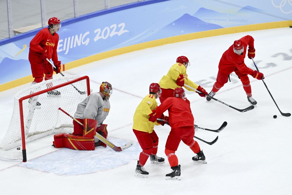 1月31日,中国男子冰球队在国家体育馆进行备赛训练。新华社记者马宁摄